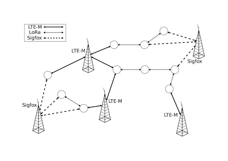 De plus, il existe toujours des « zones blanches », couvertes par aucune technologie et n’offrant donc pas de possibilité d’accès à un réseau externe. Dans un réseau multitechnologie, un capteur isolé de la sorte pourrait relayer ses données à l’un de ses voisins.