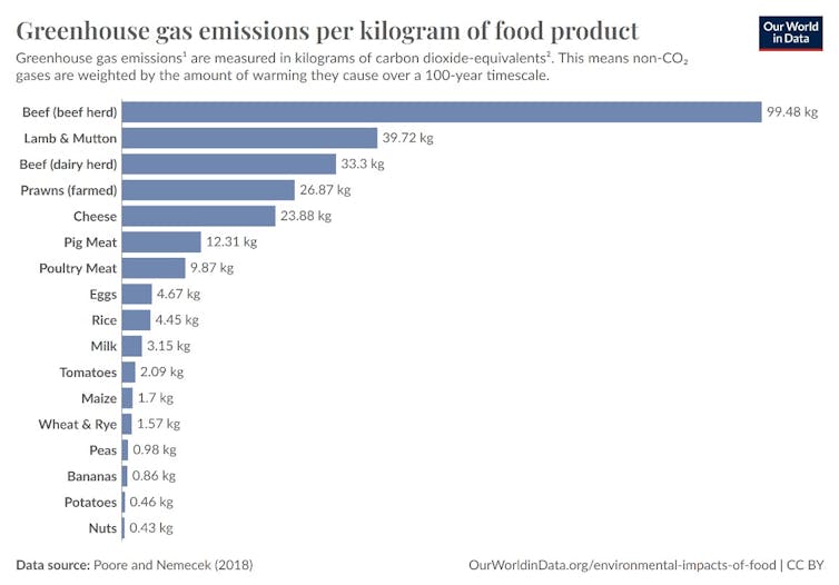 D’autres études (par exemple en 2014 et en 2023) aboutissent à des résultats similaires pour ce qui est des émissions de gaz à effet de serre, tout en prenant également en compte des questions connexes : demande de terres agricoles, consommation d’eau, eutrophisation ou encore impact sur la biodiversité.