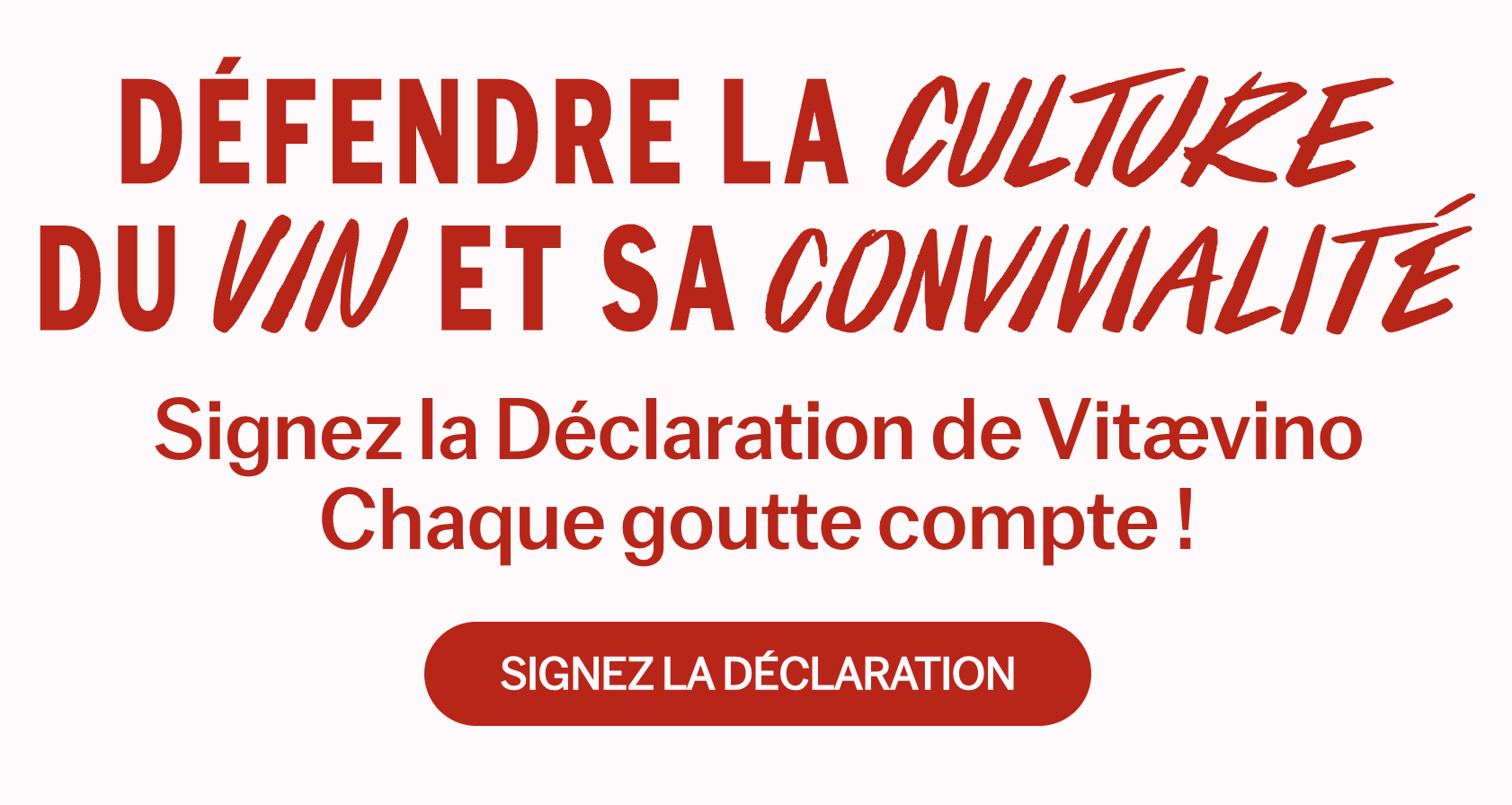 On notera au passage que la France, premier pays viticole d’Europe est très mal représentée au CEEV qui relève plutôt d’une chasse gardée Italo-espagnole. Soucieux du dénigrement généralisé de la civilisation de la vigne et du vin, le CEEV a lancé il y a un an, une opération grand public intitulée VITAEVINO relayée en France par Vin & Société. Nous avons reçu à Génération Vignerons un appel à signer la déclaration de VITAEVINO : Pour défendre la culture du vin et sa convivialité : chaque goutte compte !
