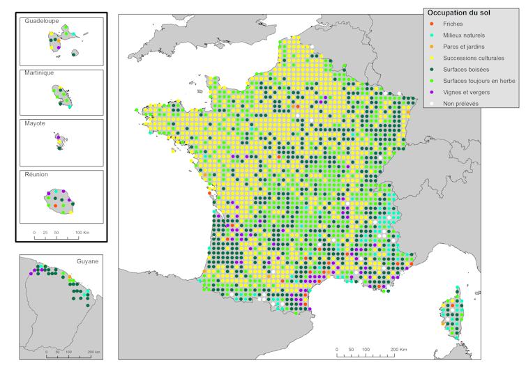 Objectif de ces travaux : inventorier les sols et les étudier sous toutes les coutures. L’inventaire a commencé en 2002 avec la mise en place du Réseau de mesure de la qualité des sols (RMQS) : 1 échantillon prélevé systématiquement tous les 16km, en métropole, en Corse et en Outre-Mer.